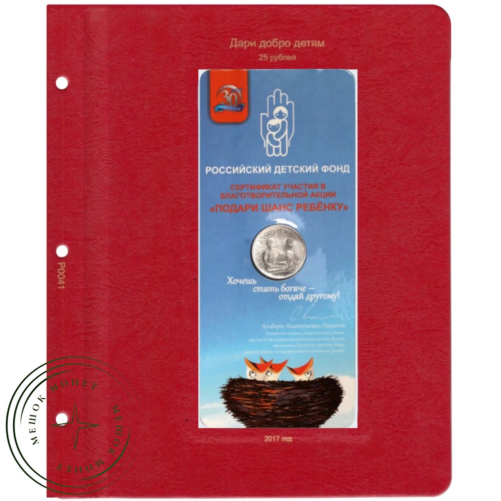 В сентябре 2017 года, в целях поддержки благотворительной деятельности в области защиты детей, ЦБ Российской Федерации выпустил памятную монету достоинством 25 рублей «Дари добро детям».
