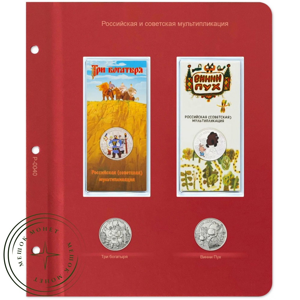 Лист для монет серии Российская—советская мультипликация (Три богатыря / Винни Пух) в Альбом Коллекц — 73817041