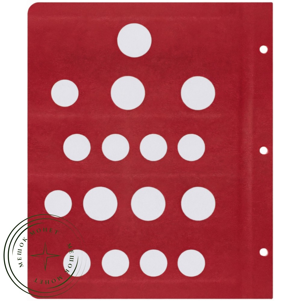Лист предназначен для систематизированного хранения коллекционных монет Банка России из недрагоценных металлов (биметаллические и стальные монеты с лаковым покрытием).