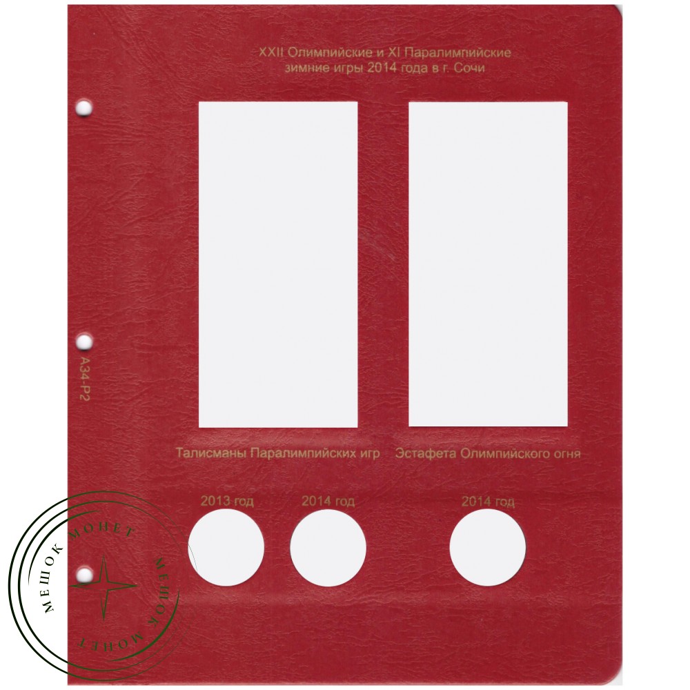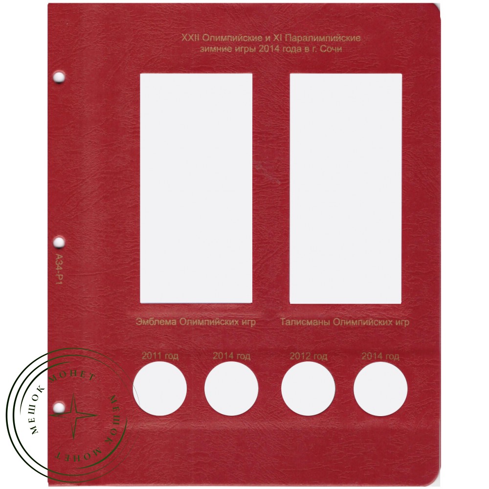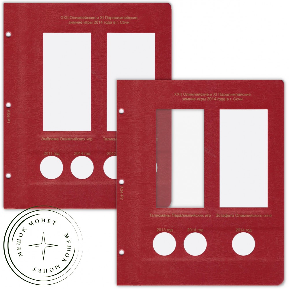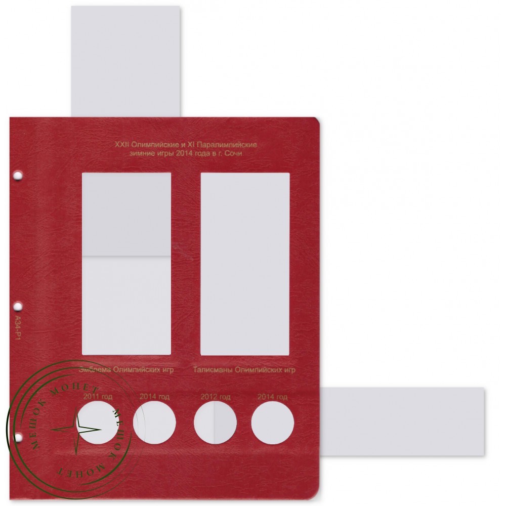 Дополнительный комплект листов для полного комплекта юбилейных монет Сочи 25 рублей в блистерах. В комплекте 2 листа.