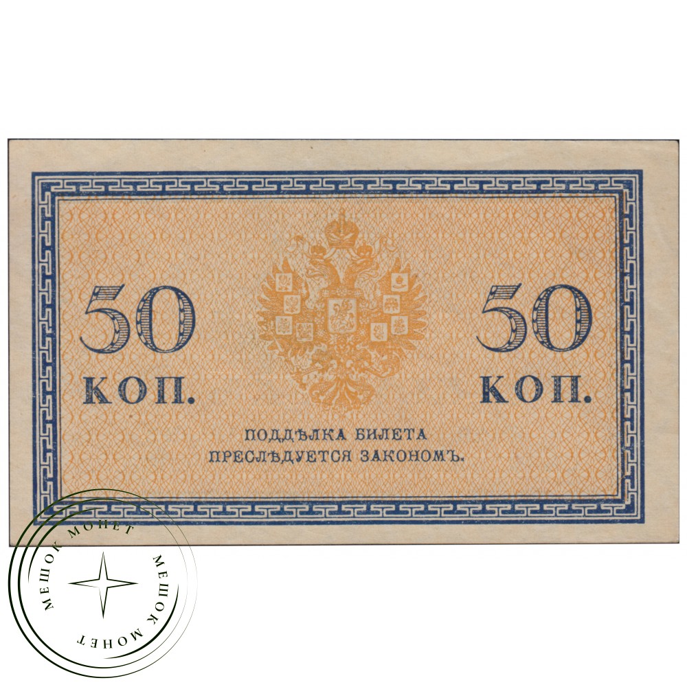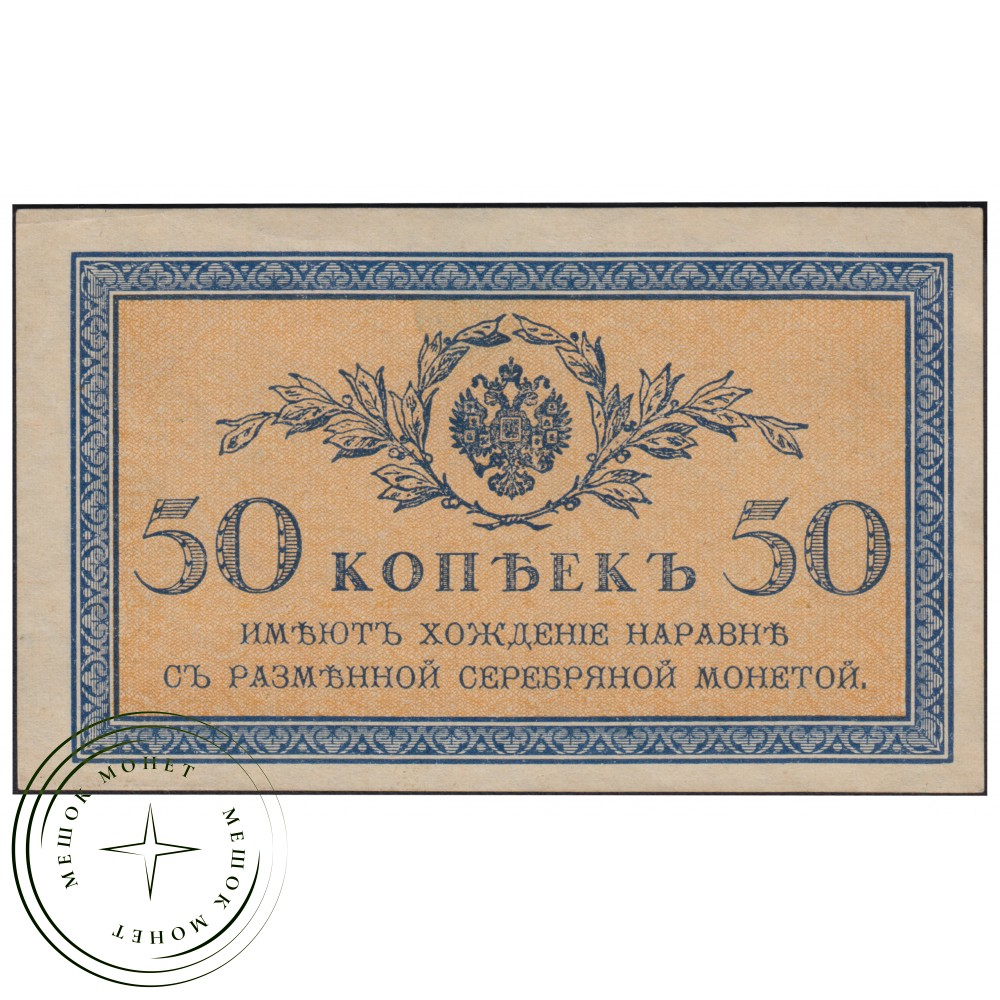 Денежная купюра (казначейский знак) номиналом 50 копеек, выпущенная Временным правительством России в 1917 году.