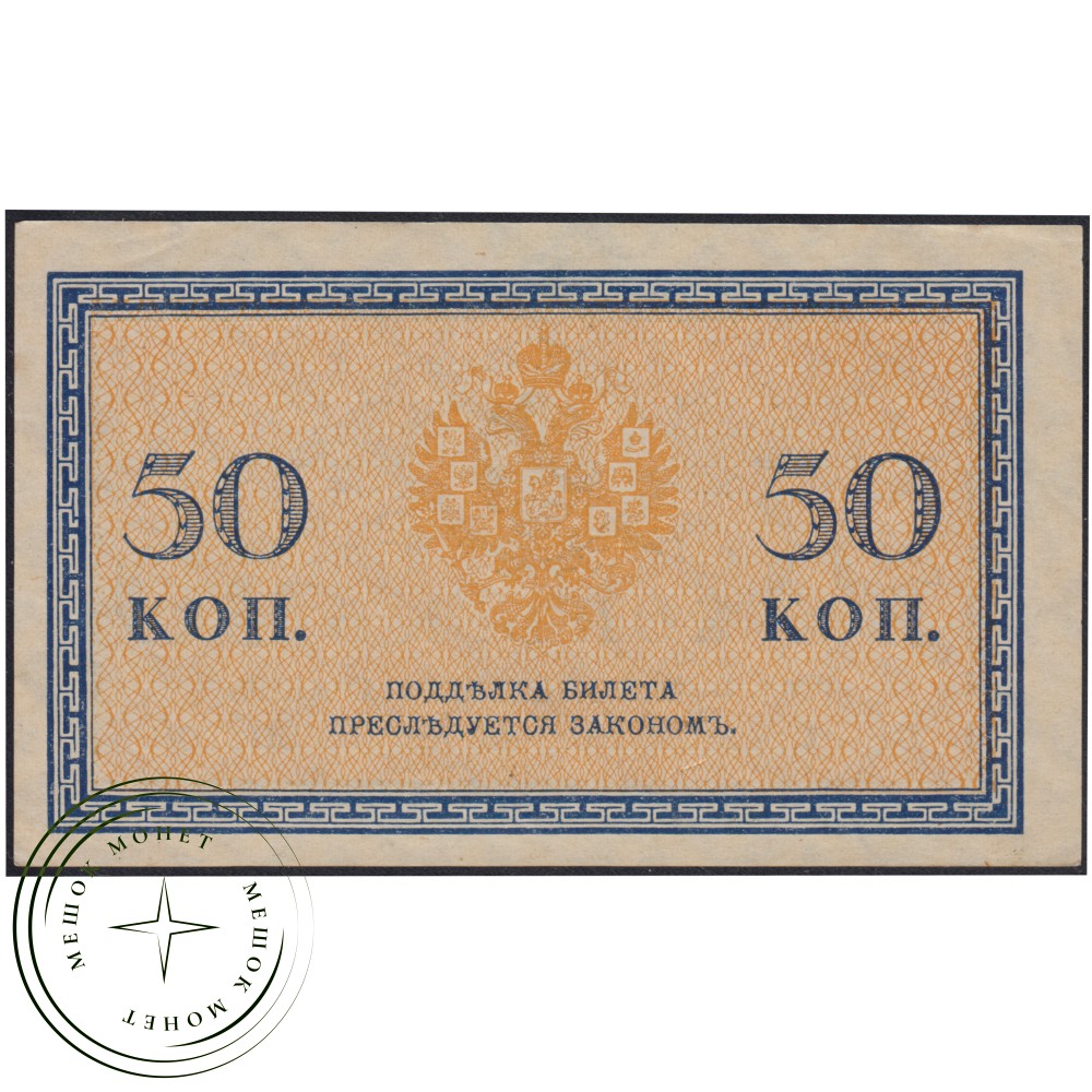 Денежная купюра (казначейский знак) номиналом 50 копеек, выпущенная Временным правительством России в 1917 году.