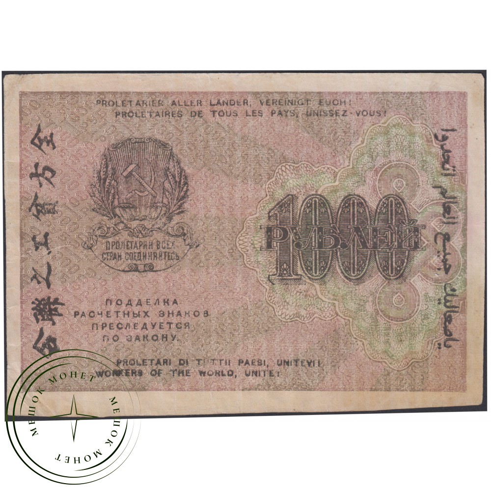 Расчётная банкнота Российской Социалистической Федеративной Советской Республики (РСФСР) номиналом 1000 рублей, выпущенная в 1919 году.