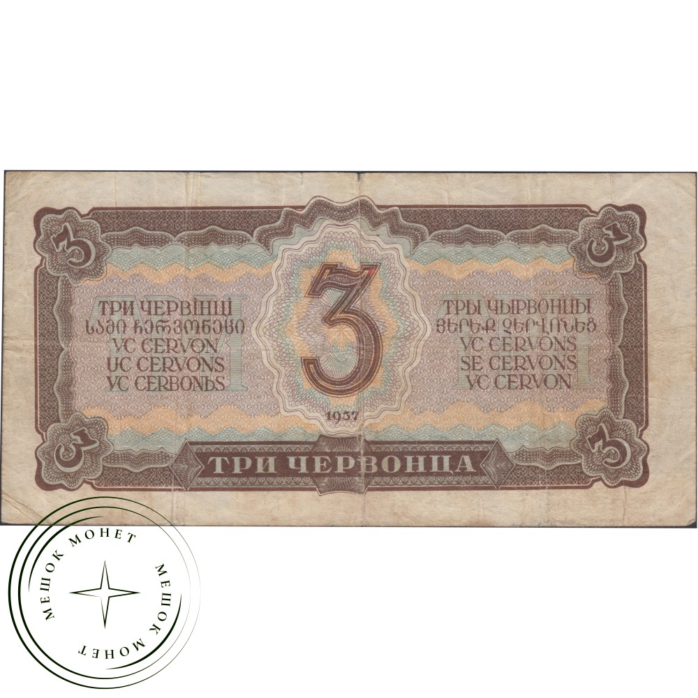 Банкнота номиналом Три Червонца Государственного Банка Союза ССР.