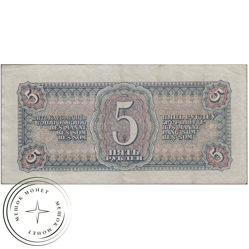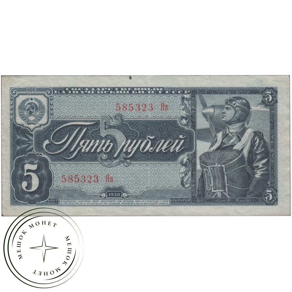 Государственная казначейская банкнота СССР номиналом 5 рублей образца 1938 года.