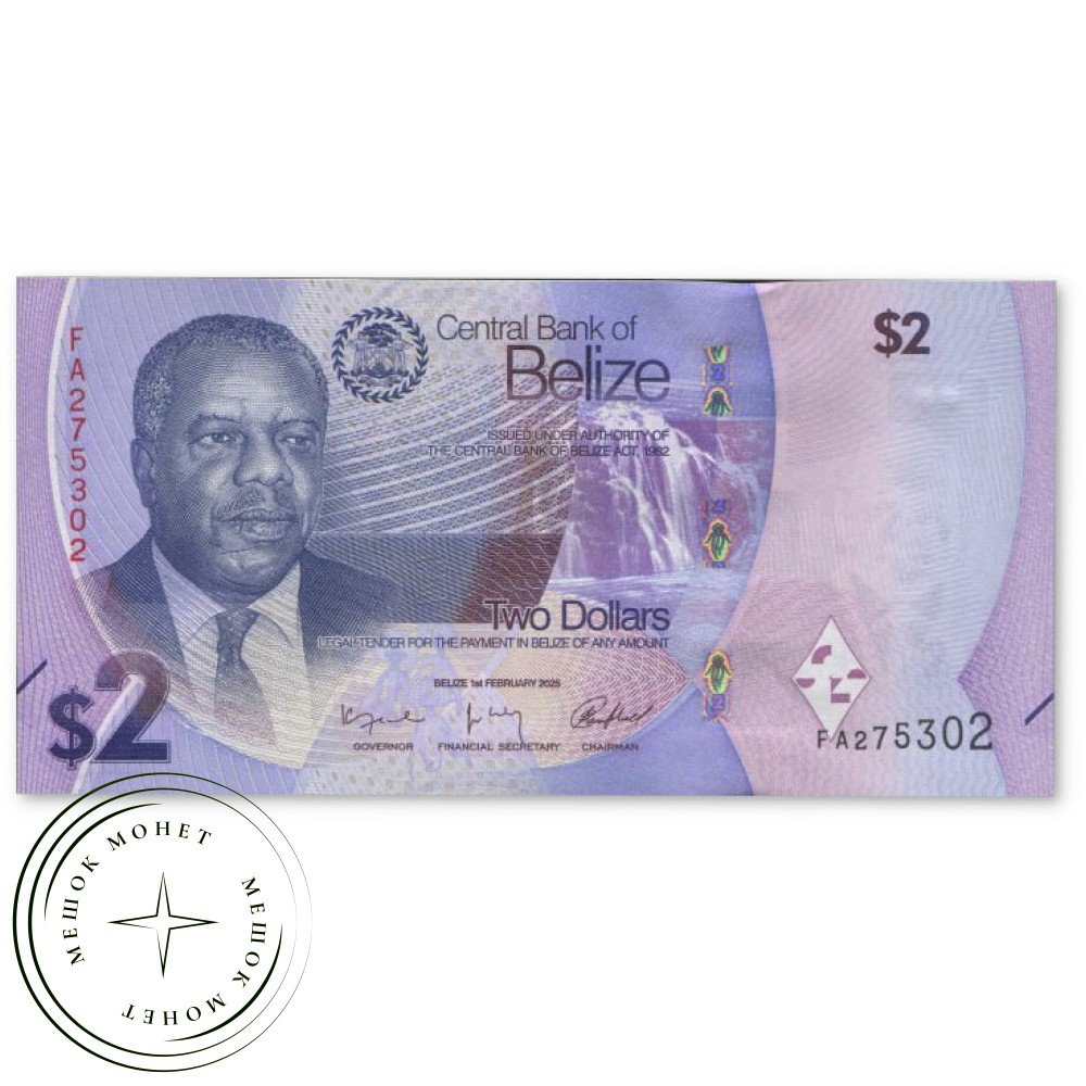 Надпись: Центральный банк Белиза. Выпущено в соответствии с Законом о Центральном банке Белиза.