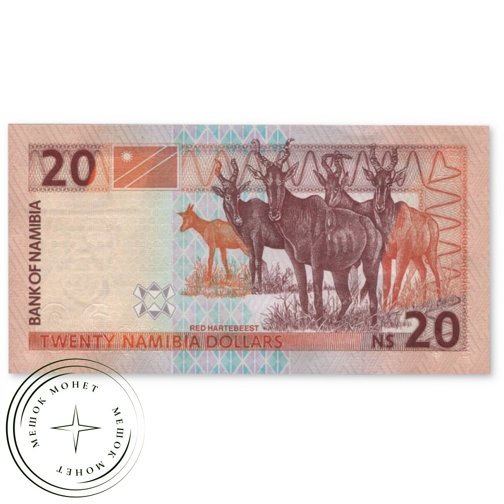 Банкнота 20 намибийских долларов, выпущенная Банком Намибии в 2002 году.