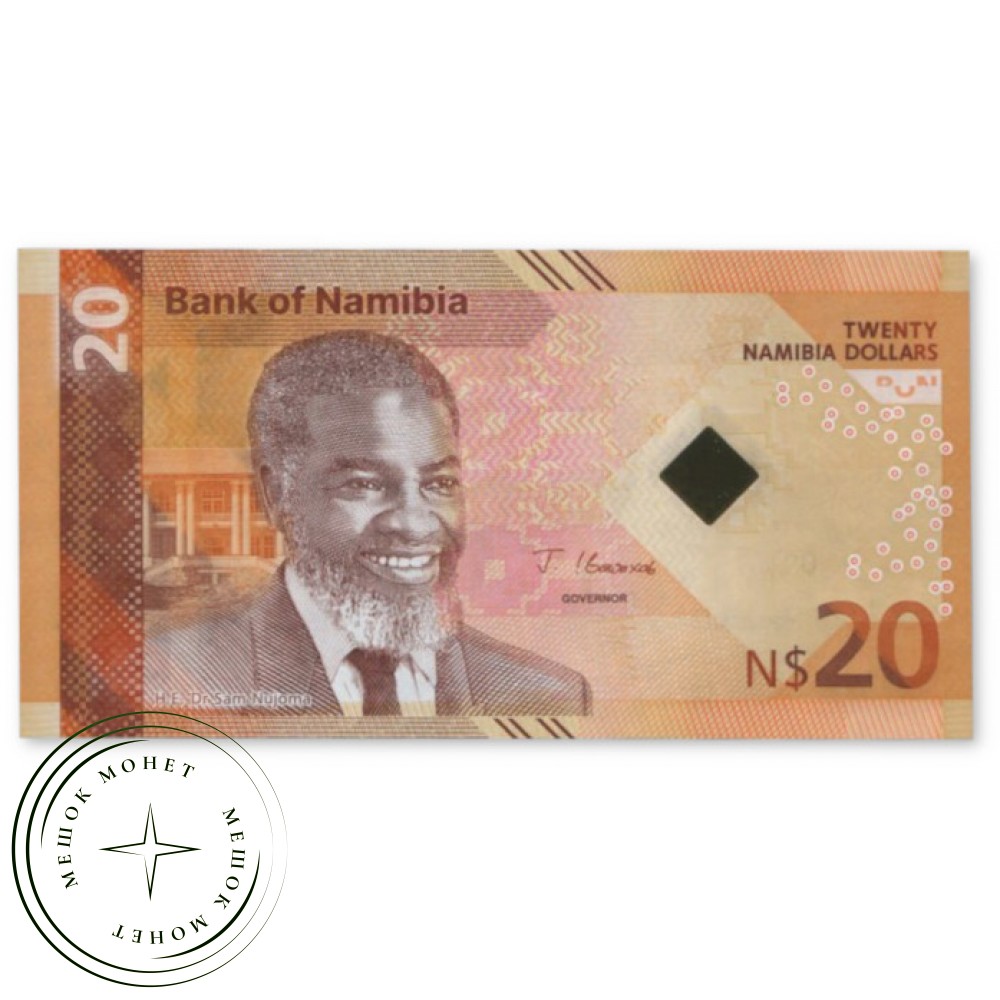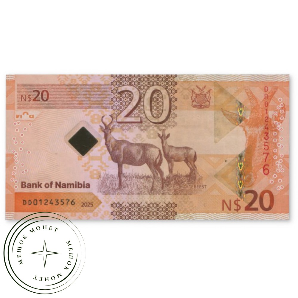 Банкнота номиналом 20 намибийских долларов. Намибийский доллар (N$) является официальной валютой Намибии с 1993 года.