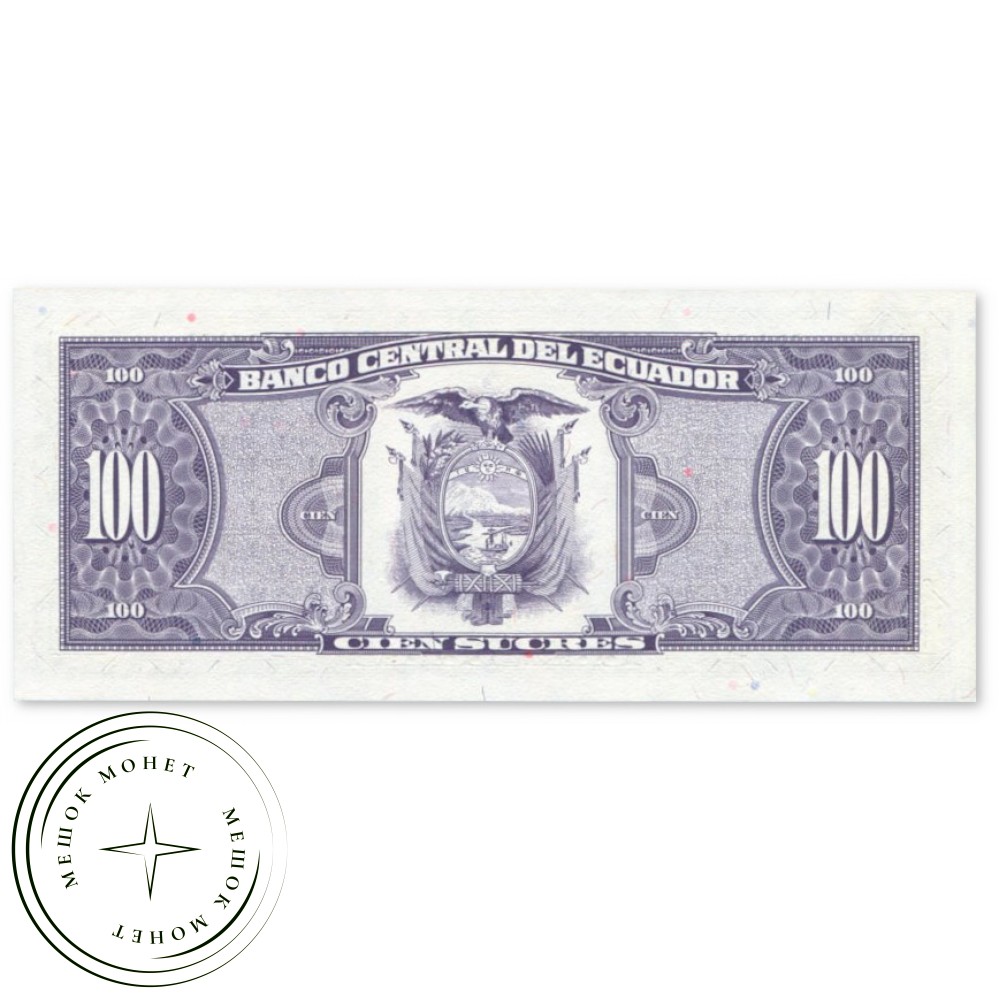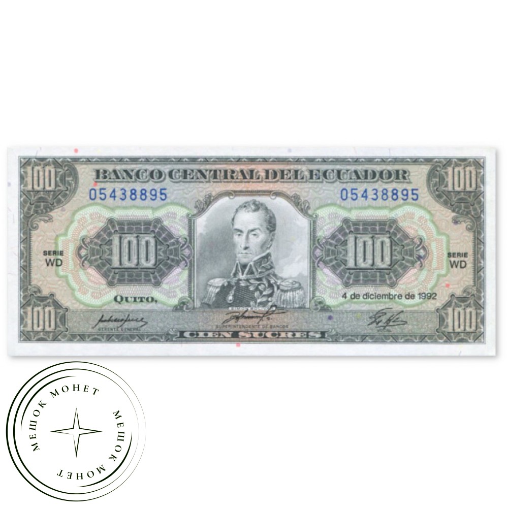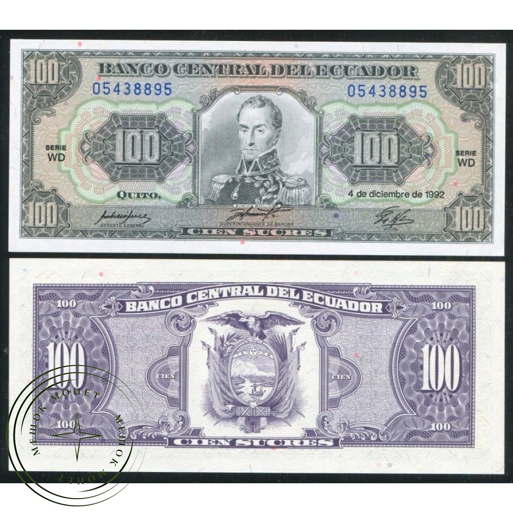 Банкнота Эквадора номиналом 100 сукре выпуска 1992 года. Сукре был официальной валютой Эквадора с 1884 по 2000 год, когда его заменил доллар США.