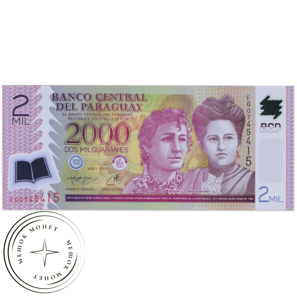 Полимерная банкнота номиналом 2000 гуарани 2023 года из Парагвая.