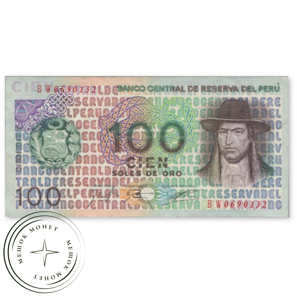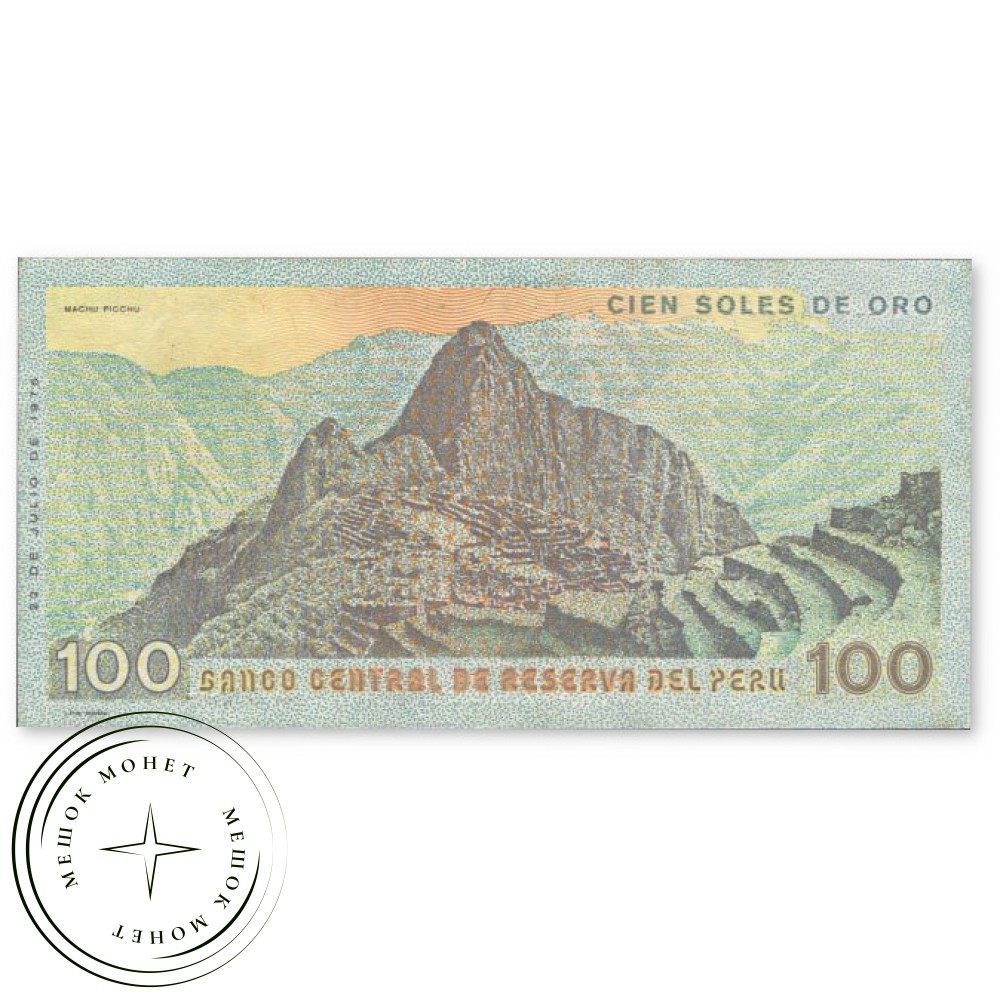 Банкнота Перу номиналом 100 солей де оро (100 Soles de Oro) 1976 года выпуска.