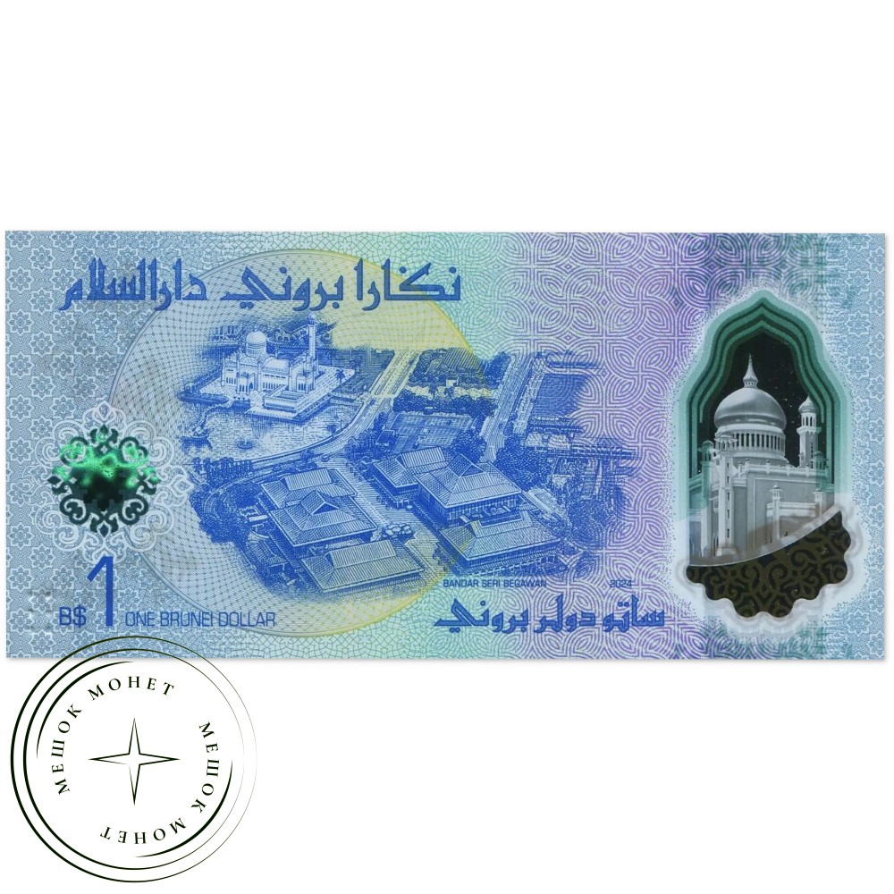 Полимерная банкнота Брунея номиналом 1 доллар (также называемый ринггитом), выпущенная в 2024 году.