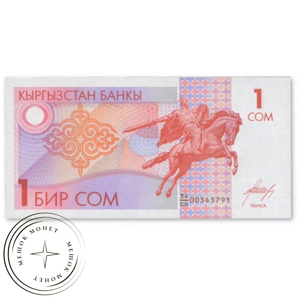 Банкнота номиналом 1 сом Кыргызстана. Эта банкнота была введена в обращение 10 мая 1993 года.