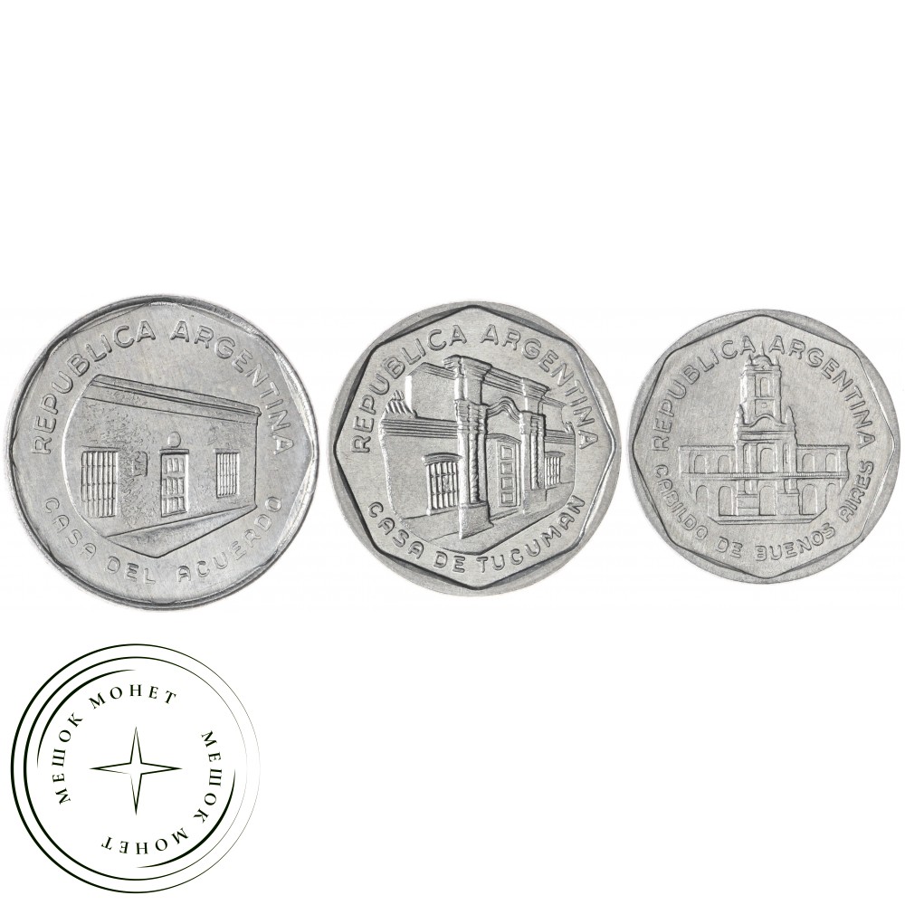 Аргентина набор 3 монеты 1, 5 и 10 аустралей 1989 Местные достопримечательности