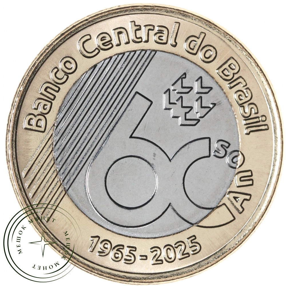 Бразильская монета достоинством 1 реал, выпущенная в честь 60-летия Центрального банка Бразилии.