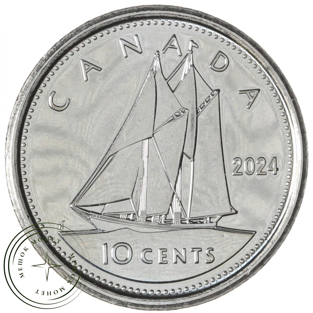 Монета номиналом 10 центов 2024 года. Страна: Канада. Состояние: UNC.