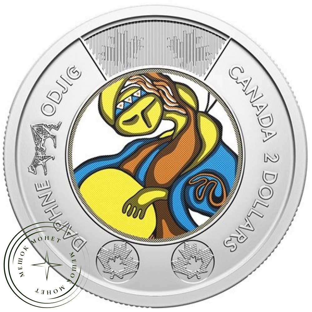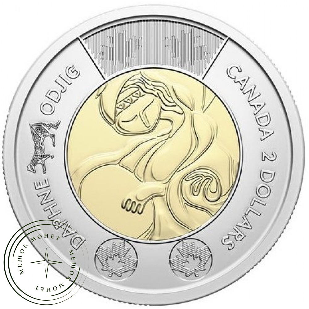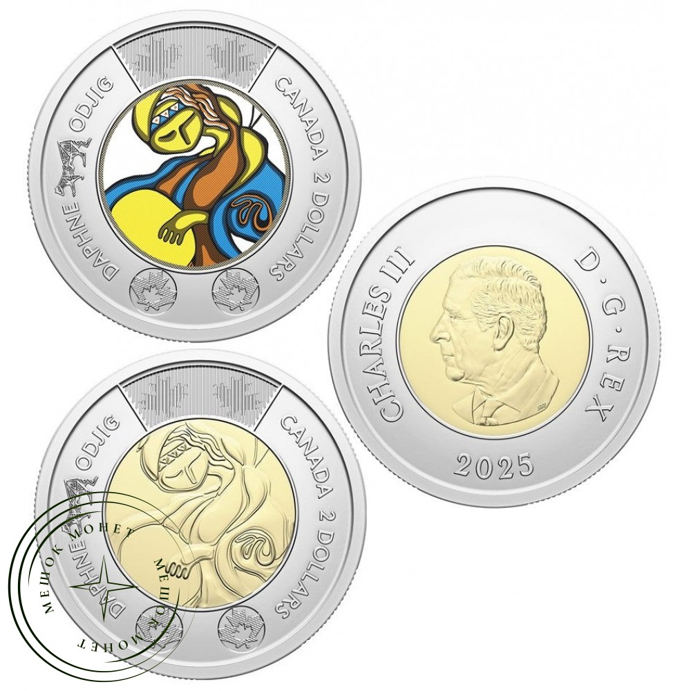 Канадские памятные монеты номиналом 2 доллара (туни) 2025 года, посвященные жизни и творчеству Дафны Оджиг, выдающейся художницы коренных народов Канады.