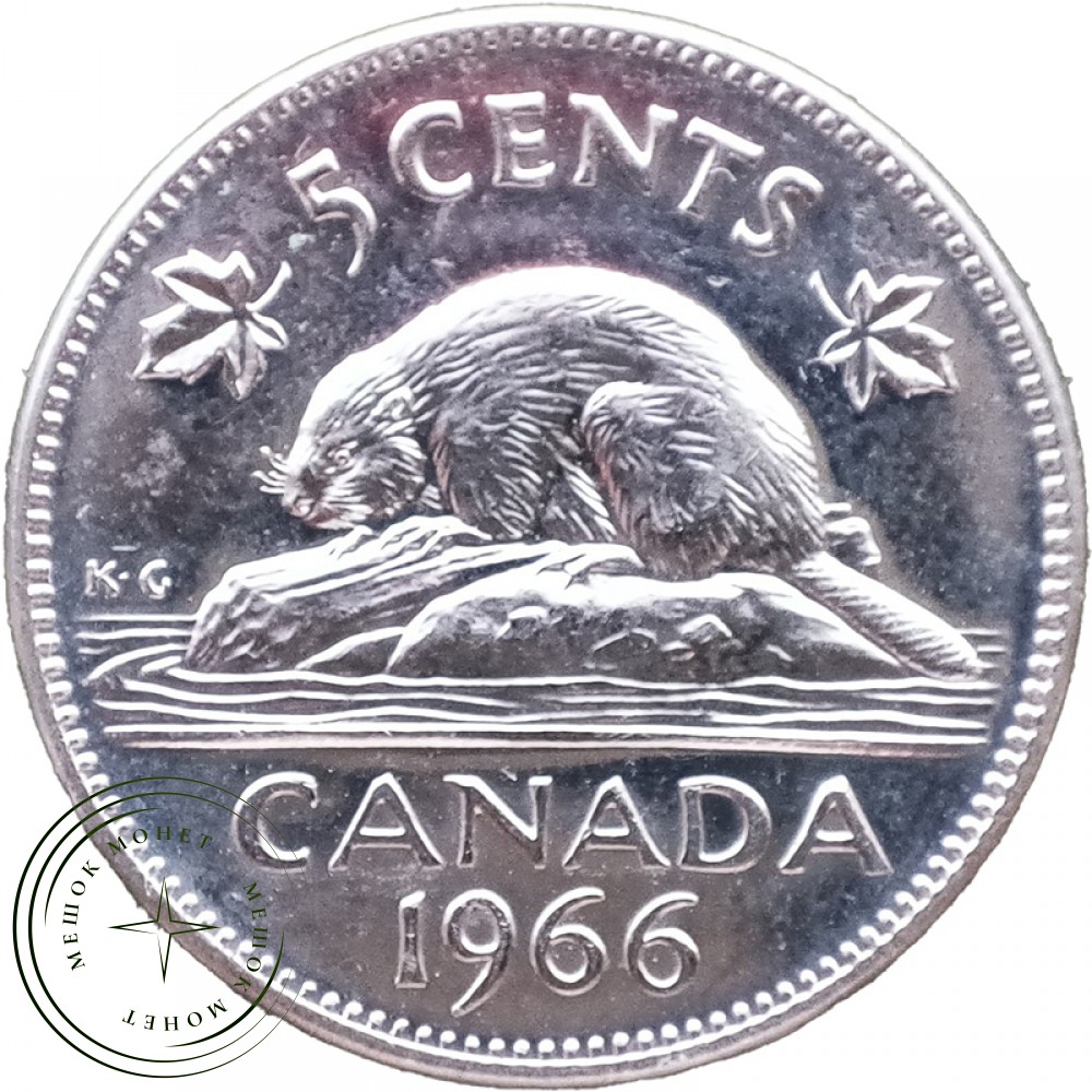 На реверсе монеты 5 центов мы видим бобра — охота на него когда-то была основным промыслом многих канадцев. Этот зверек стал живым символом страны, олицетворяя собой трудолюбие, предприимчивость и мирную жизнь.