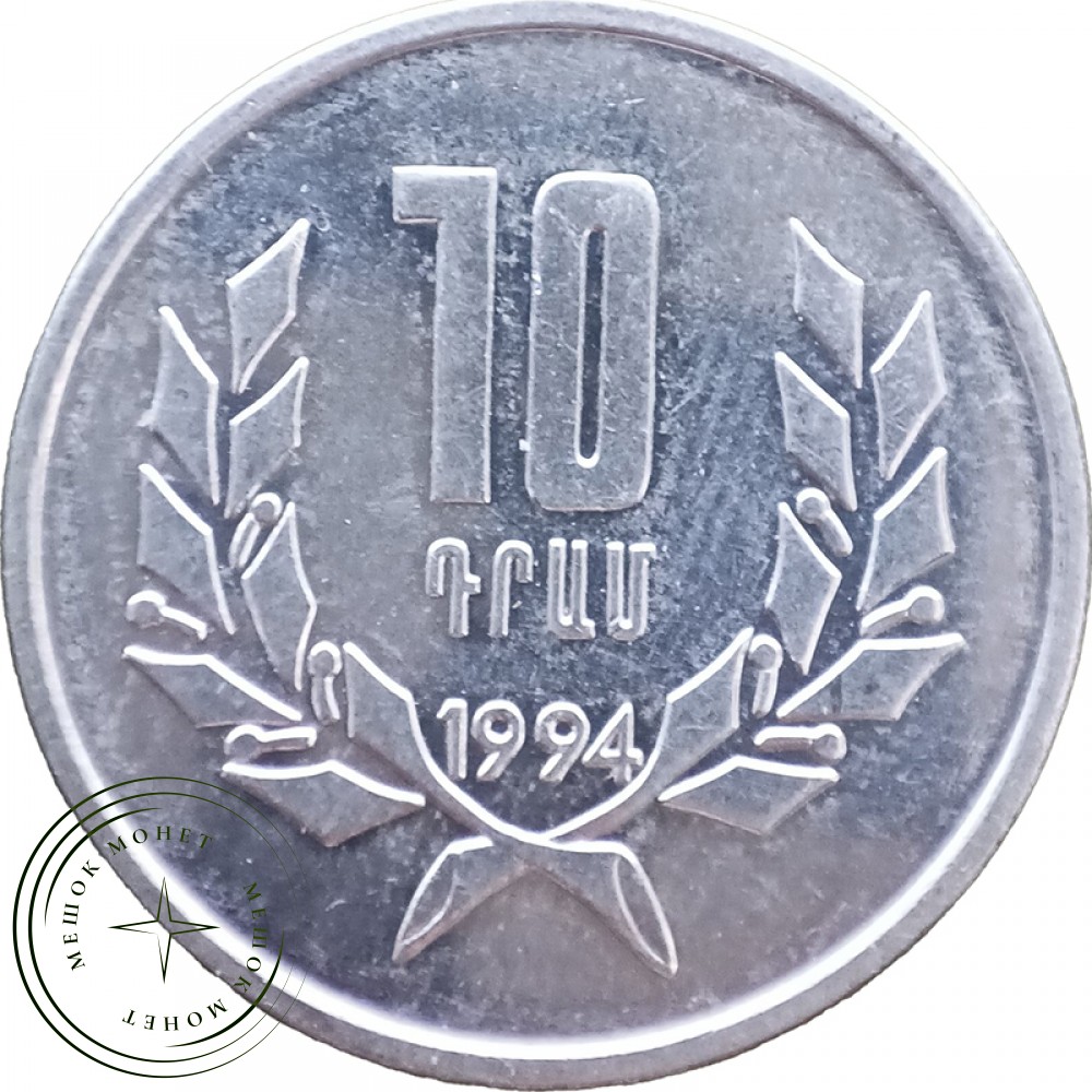 Монета номиналом 10 драмов 1994 года. Страна: Армения.