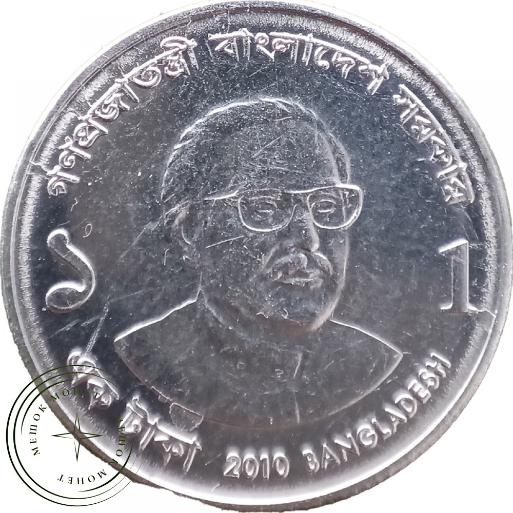 На аверсе изображён герб Бангладеш, принятый в 1971 г., вскоре после объявления независимости. Герб состоит из кувшинки, плавающей на поверхности водной глади, обозначенной пятью горизонтальными волнистыми линиями — символом многочисленных рек. С обеих сторон от цветка расположены колосья риса — сельскохозяйственной культуры, имеющей наибольшее значение для экономики страны и жизни ее населения. Вверху изображены три листа джута — один вертикальный и два горизонтальных. Бангладеш является крупнейшим мировым производителем текстильного волокна из этого растения. По сторонам выгравированы четыре пятиконечные звезды, символизирующие основополагающие принципы первой Конституции, принятой в 1972 г.: народность, гражданственность, социализм и демократия.