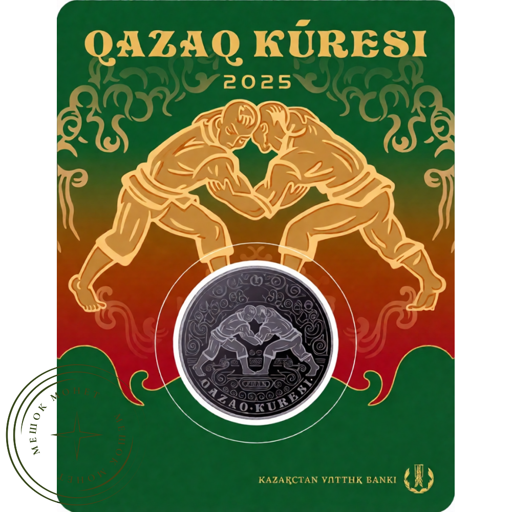 Монета «Qazaq Kúresi» Национального банка Казахстана 2025 года.