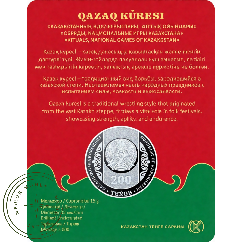 Монета посвящена традиционной казахской борьбе «Қазақ күресі».