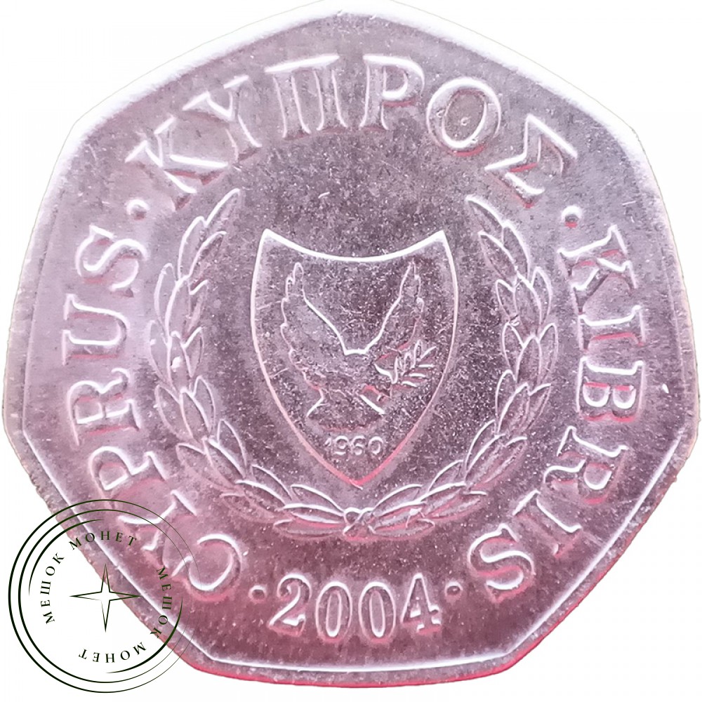 На аверсе в центре расположен герб Республики Кипр: на щите изображен летящий вправо голубь с оливковой веточкой в клюве. На нижней оконечности щита выгравирован год (1960), когда остров Кипр получил независимость от Великобритании. Фон (в цветной версии желтый, что символизирует месторождения меди на острове) на монете передан волнистыми линиями. Щит обрамлен с обеих сторон симметричными оливковыми ветвями, связанными снизу. Вокруг герба название страны повторена на трех языках: слева — по-турецки, справа — по-английски, внизу, более крупно, — по-гречески.