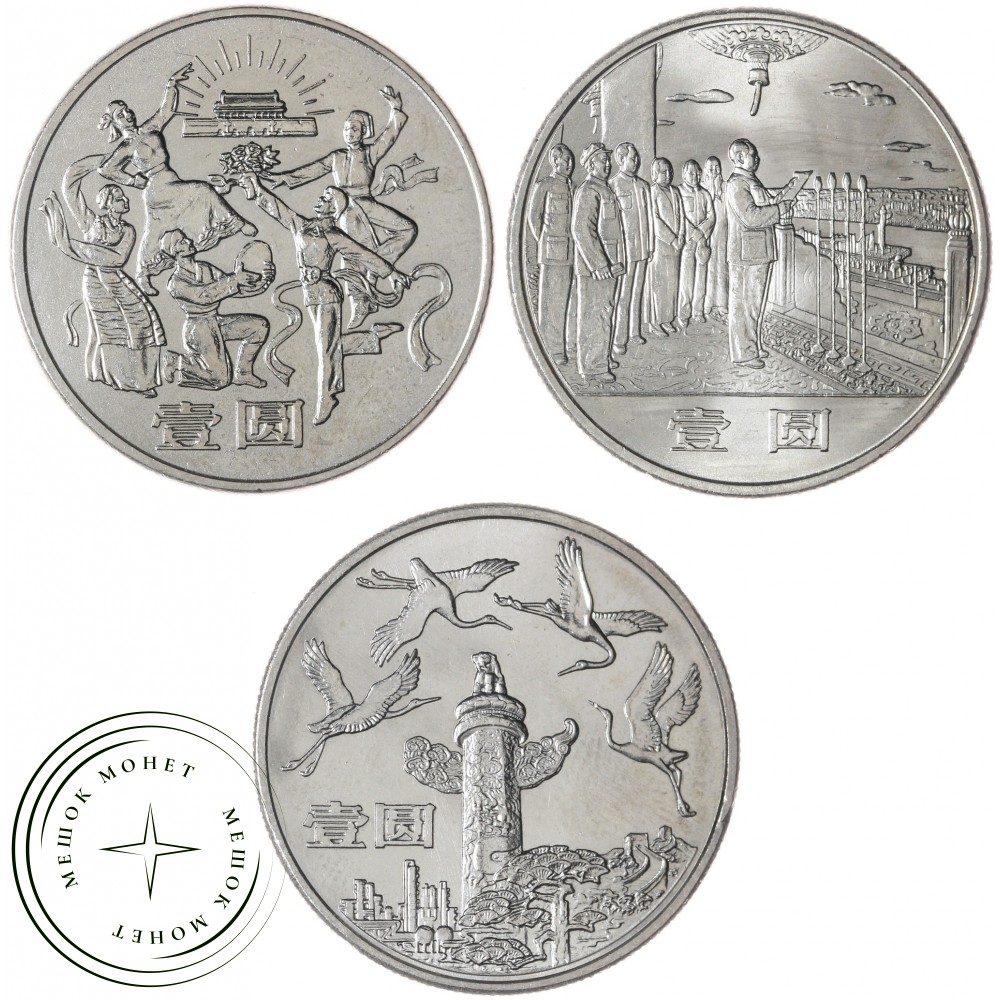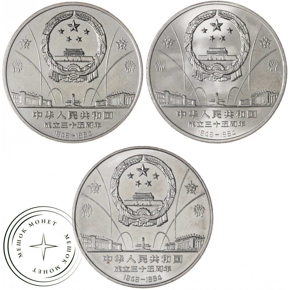 Китай набор 3 монеты 1 юань 1984 35 лет КНР