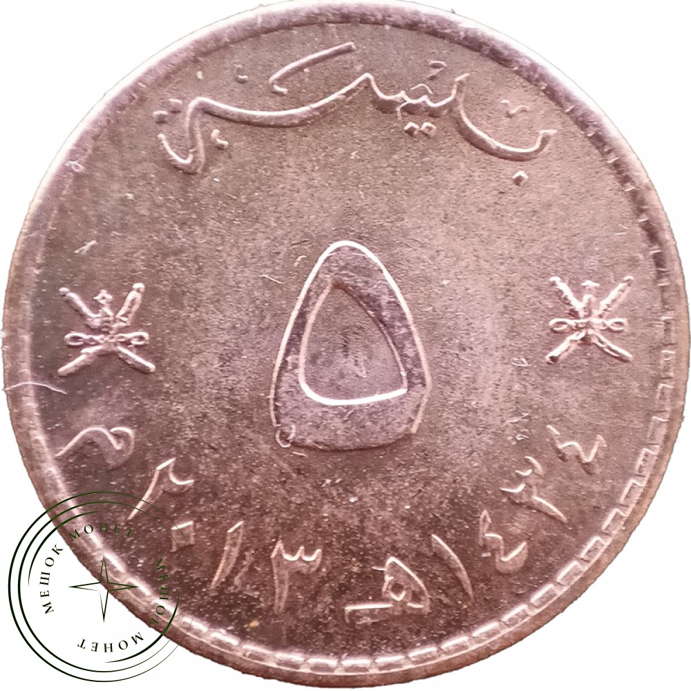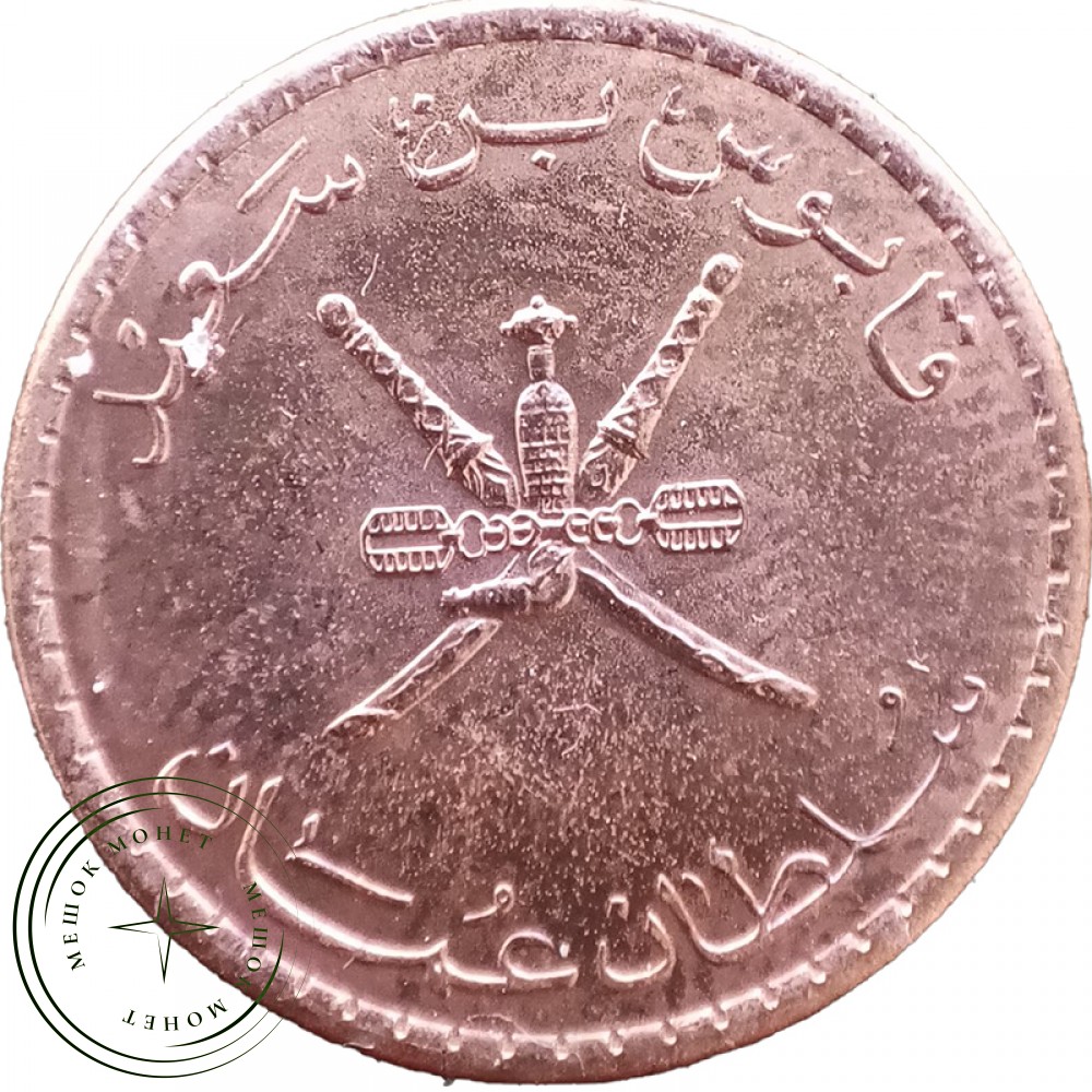 В центре аверса изображен герб султаната: кинжал ханьяр в изогнутых ножнах, с острием, повернутым налево, и двумя застежками для того, чтобы носить его на поясе. На кинжал наложены две скрещенные турецкие сабли. Ханьяр длиной до 30 сантиметров — холодное оружие индоперсидского происхождения. Его выковывали из дамасской стали, заточенной с обеих сторон, часто дополняли ручкой и рукояткой, также металлическими и богато украшенными.