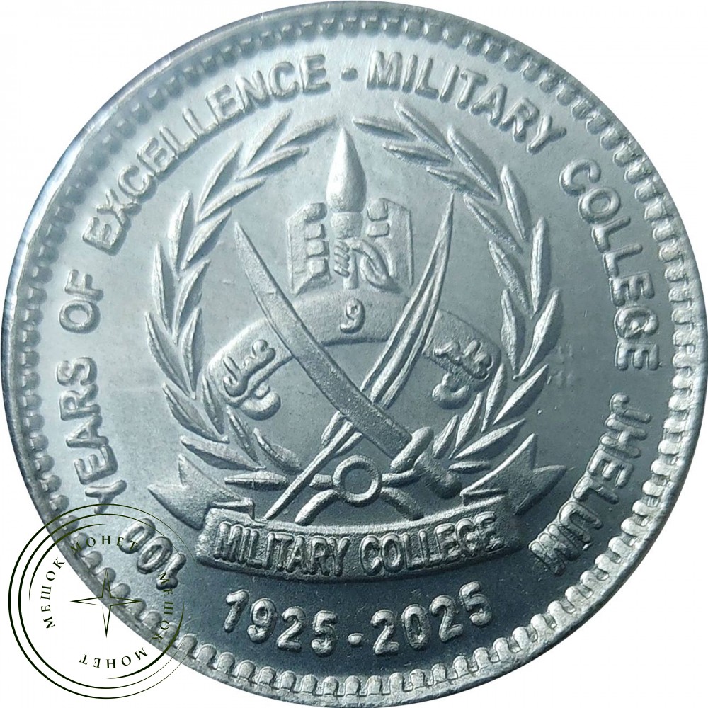 Дизайн реверса: В центре изображен логотип колледжа, вокруг которого надпись на английском языке «100 Years of Excellence - Military College Jhelum» и даты «1925-2025».