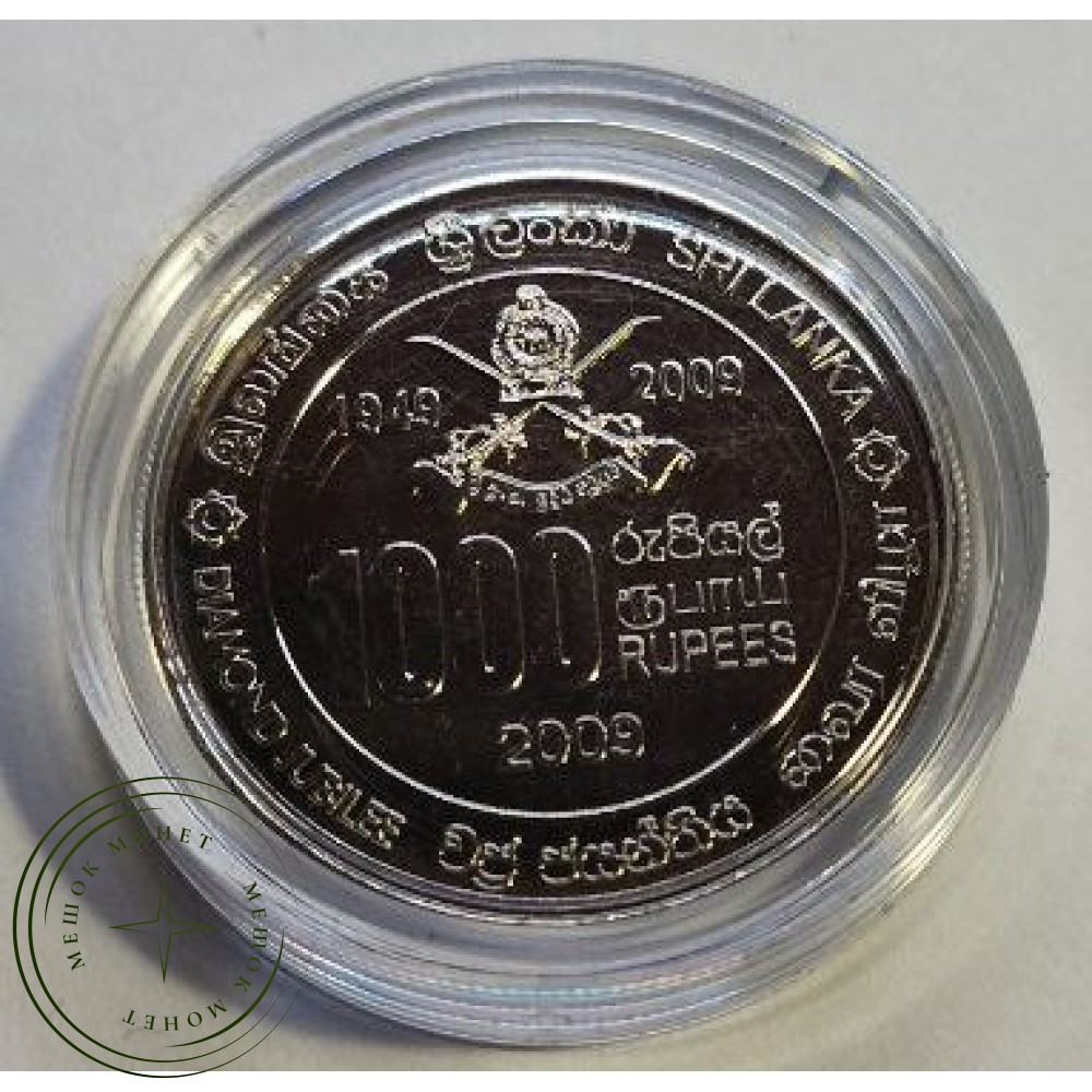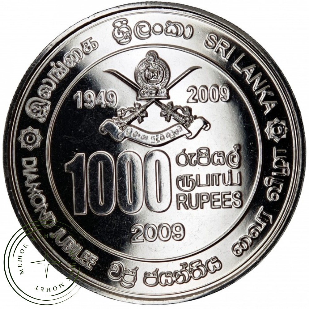 Коллекционная монета Шри-Ланки номиналом 1000 рупий, выпущенная в 2009 году в честь 60-летия армии Шри-Ланки.
