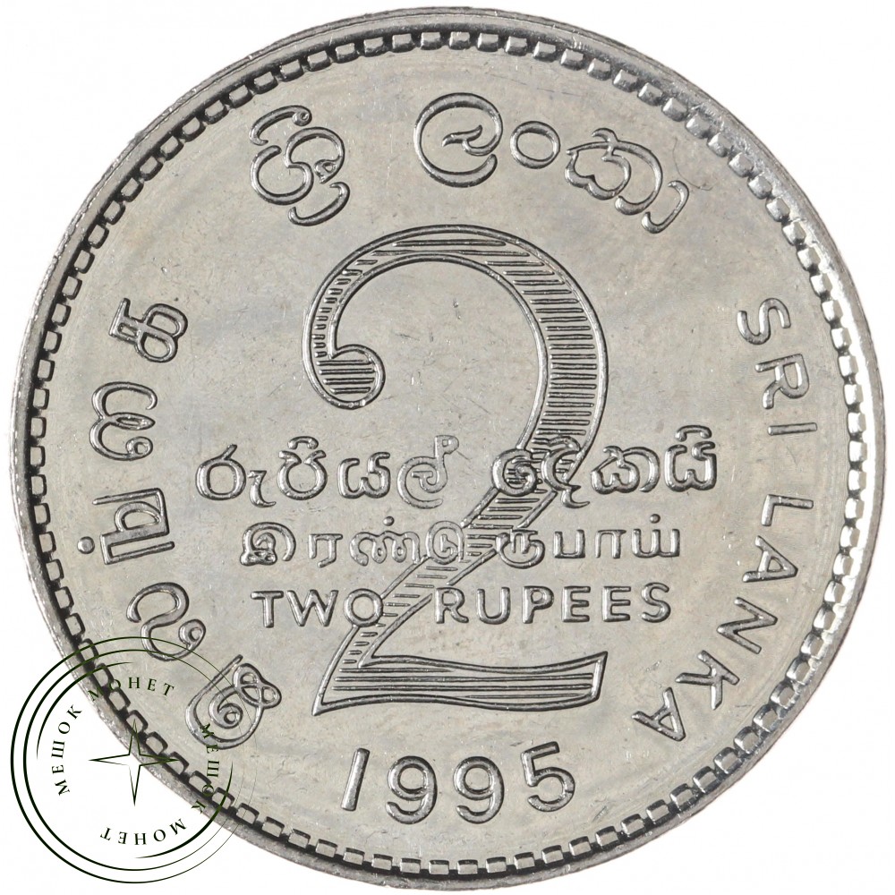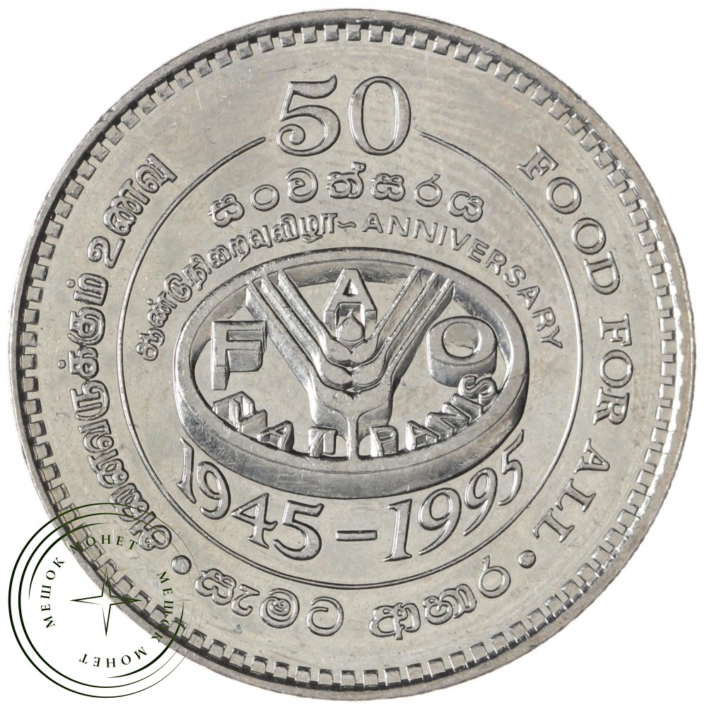 Монета номиналом 2 рупии 1995 года, посвященная ФАО — 50 лет Продовольственной программе.