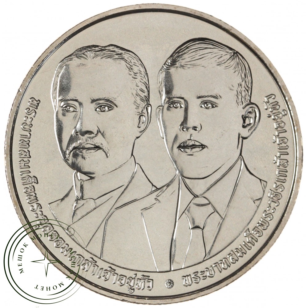 На реверсе изображены двое мужчин в официальной одежде — это, скорее всего, король Рама V (Чулалонгкорн) и его сын, король Рама VI (Ваджирасундах), которые сыграли ключевую роль в модернизации дипломатии Таиланда и установлении международных отношений.