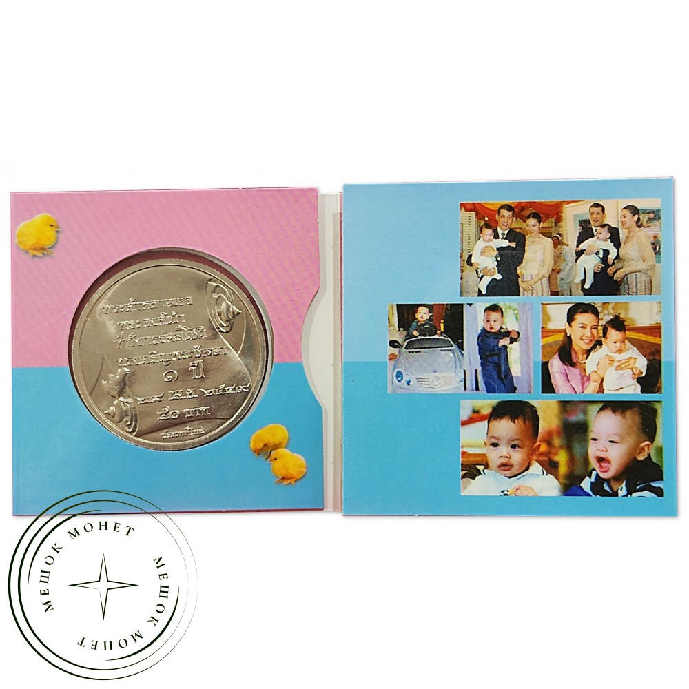 Монета достоинством 50 бат, посвященная первой годовщине Его Королевского Высочества принца Дипангкорна Расмиджоти, 2006 г., в оригинальной упаковке Министерства финансов.