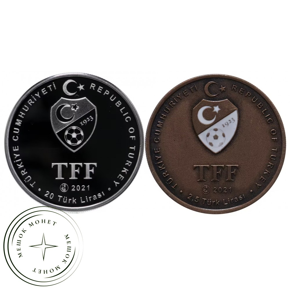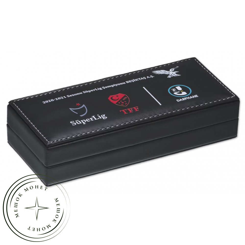 Набор из двух памятных монет, выпущенных в Турции в 2021 году в честь победы футбольного клуба «Бешикташ» в Турецкой Суперлиге сезона 2020/21.