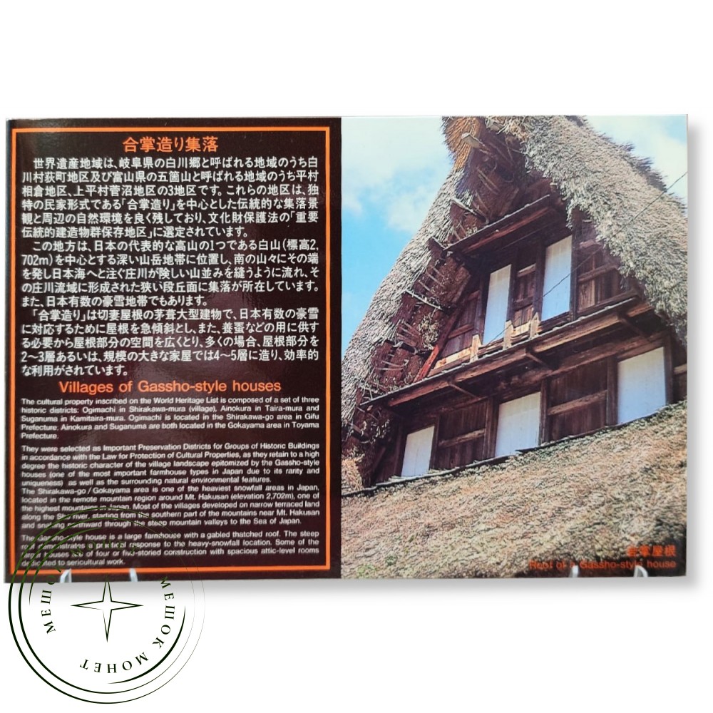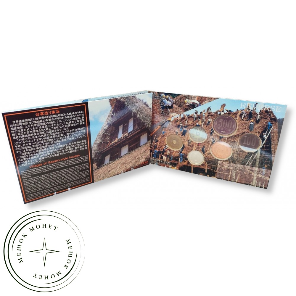 Коллекционный набор монет Японии 1996 года, посвящен деревням с уникальной архитектурой «гассё-дзукури» (дома с крутыми соломенными крышами), которые включены в список Всемирного наследия ЮНЕСКО.