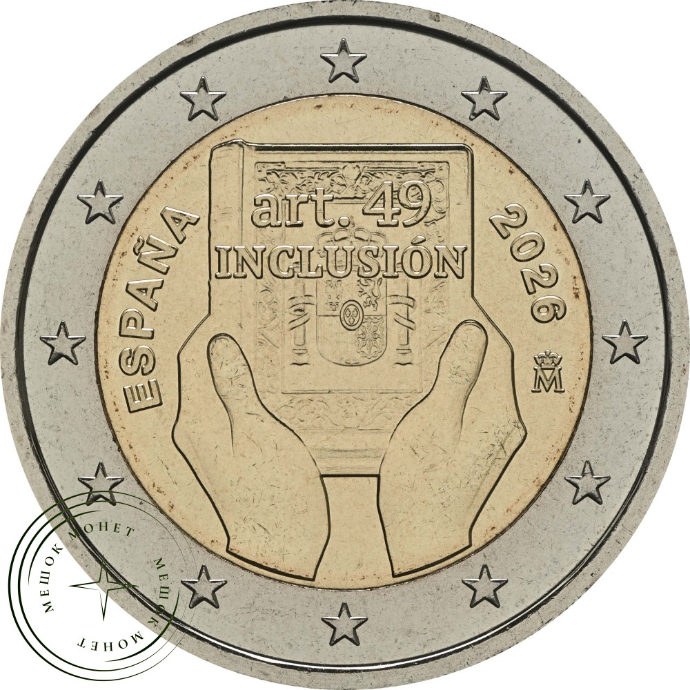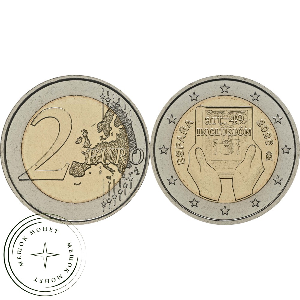 Испания посвящает выпуск памятной монеты номиналом 2 евро в 2026 году теме «Защита, права и интеграция людей с инвалидностью». В центре внимания — статья 49 Конституции Испании, которая подчеркивает обязанность государства содействовать равенству и социальной интеграции.