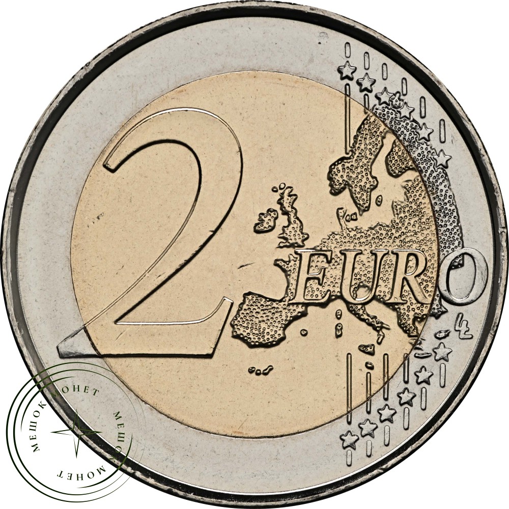 Двенадцать европейских звезд расположены на внешнем кольце национальной стороны. Европейская сторона соответствует стороне обычного номинала монеты достоинством 2 евро, используемой с 2007 года, на которой изображена карта Европы без национальных границ. Технические параметры памятной монеты номиналом 2 евро соответствуют параметрам «обычной» циркулярной монеты номиналом 2 евро.