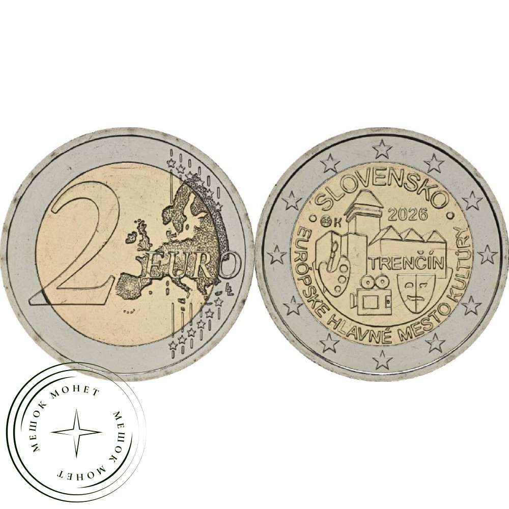 Словакия 2 евро 2026 – Тренчин – Культурная столица Европы