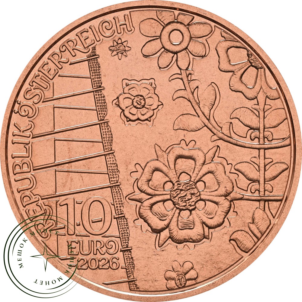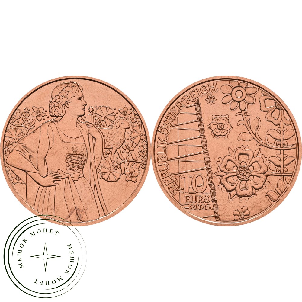 Австрийская монета номиналом 10 евро «Aufjuchazn – Loden» 2026 года выпуска входит в серию «Gschneizt & Kampelt» . Эта серия посвящена традиционным австрийским обычаям, терминам и культурным ценностям.