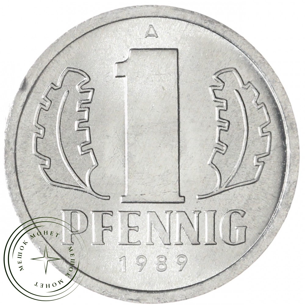 Монета номиналом 1 пфенниг 1989 года ГДР.
