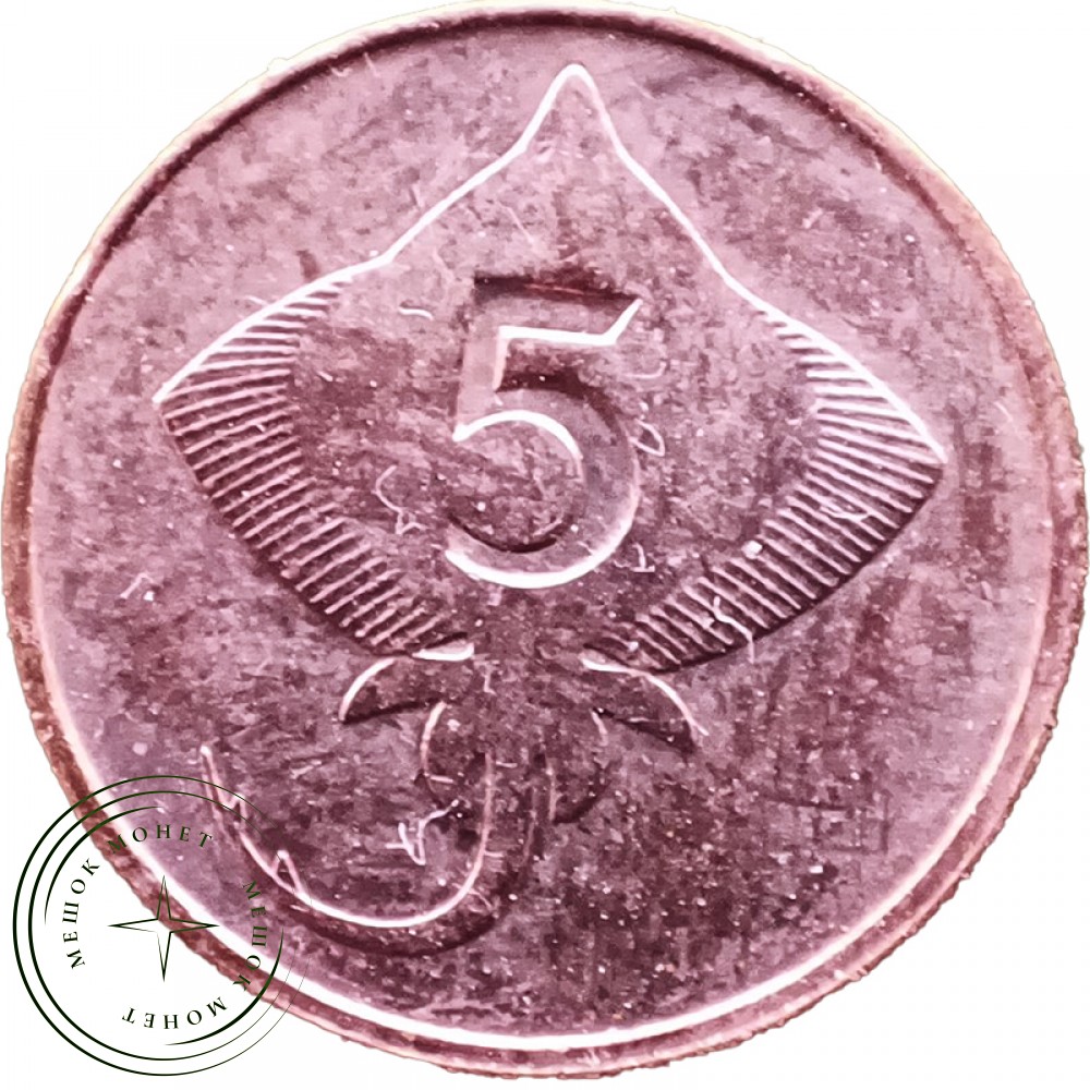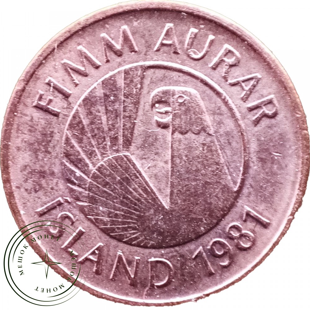 Монета номиналом 5 эйре 1981 года выпуска. Страна: Исландия