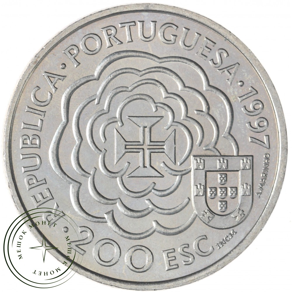 Монета номиналом 200 эскудо 1997 года. Португалия 390 лет со дня смерти Бенто ди Гойш.