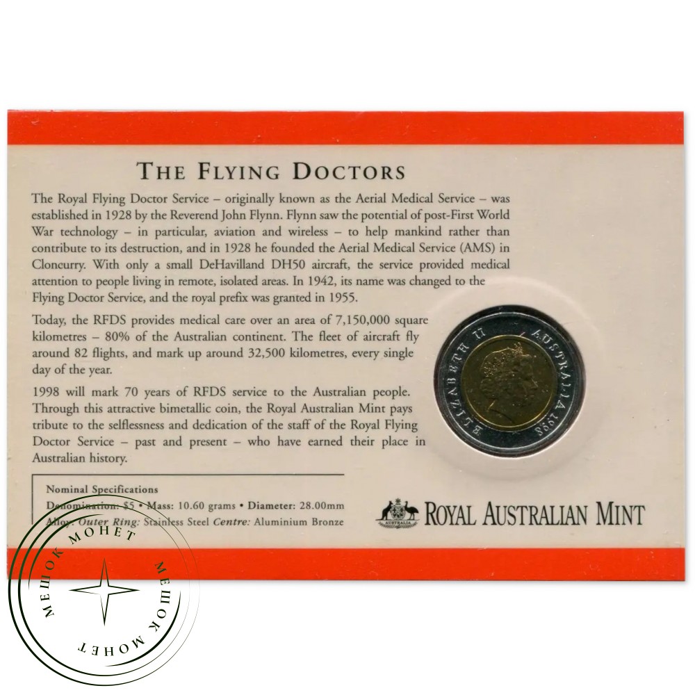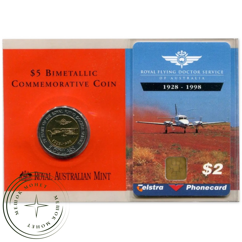 Памятный набор, выпущенный Королевским австралийским монетным двором (Royal Australian Mint) в 1998 году в честь 70-летия Королевской службы «Летающий доктор» (Royal Flying Doctor Service — RFDS).