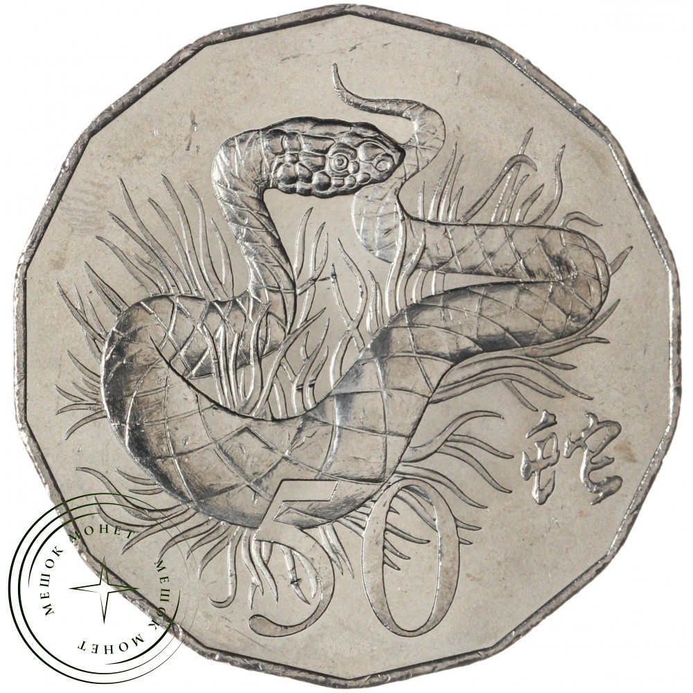 Монета номиналом 50 центов 2013 года, посвящённая Году змеи.
