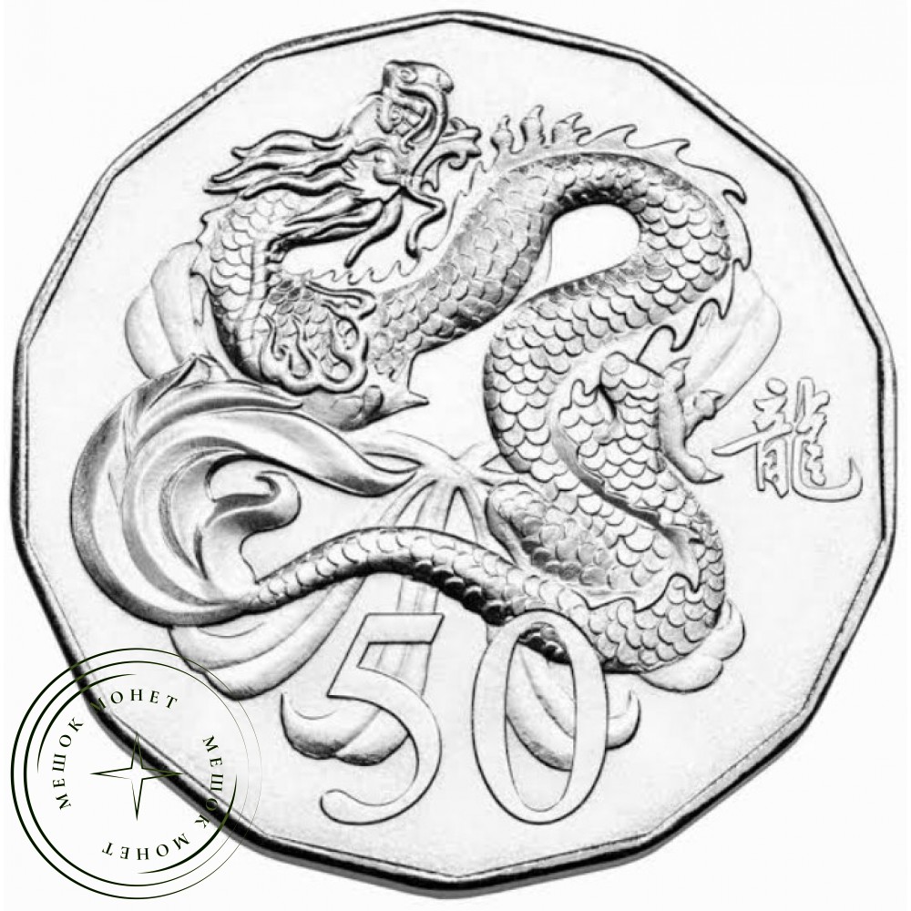 Памятная монета Австралии номиналом 50 центов, выпущенная в 2012 году в честь Года Дракона по восточному календарю.