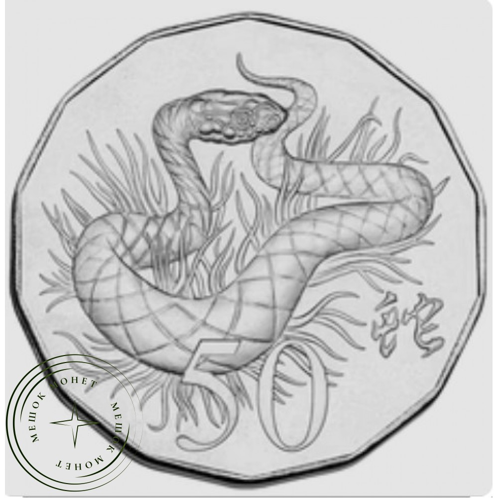 Памятная австралийская монета номиналом 50 центов, выпущенная в честь Года Змеи по лунному календарю.
