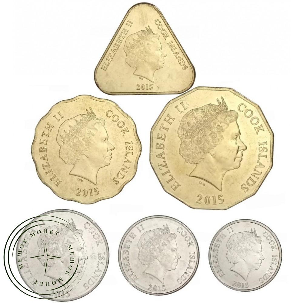Набор регулярных монет Острова Кука 2015 года.