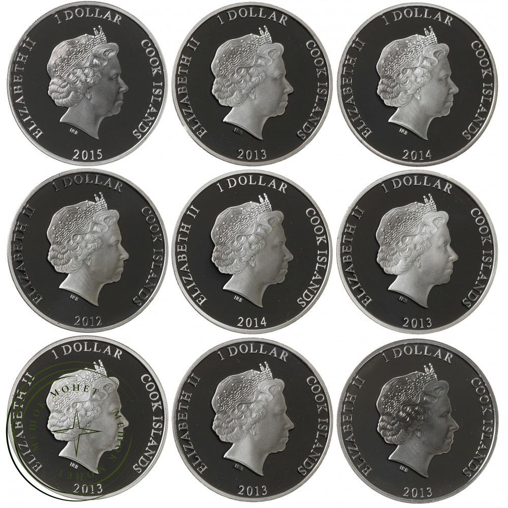Острова Кука набор 9 монет 1 доллар 2013 - 2015 Мультфильмы