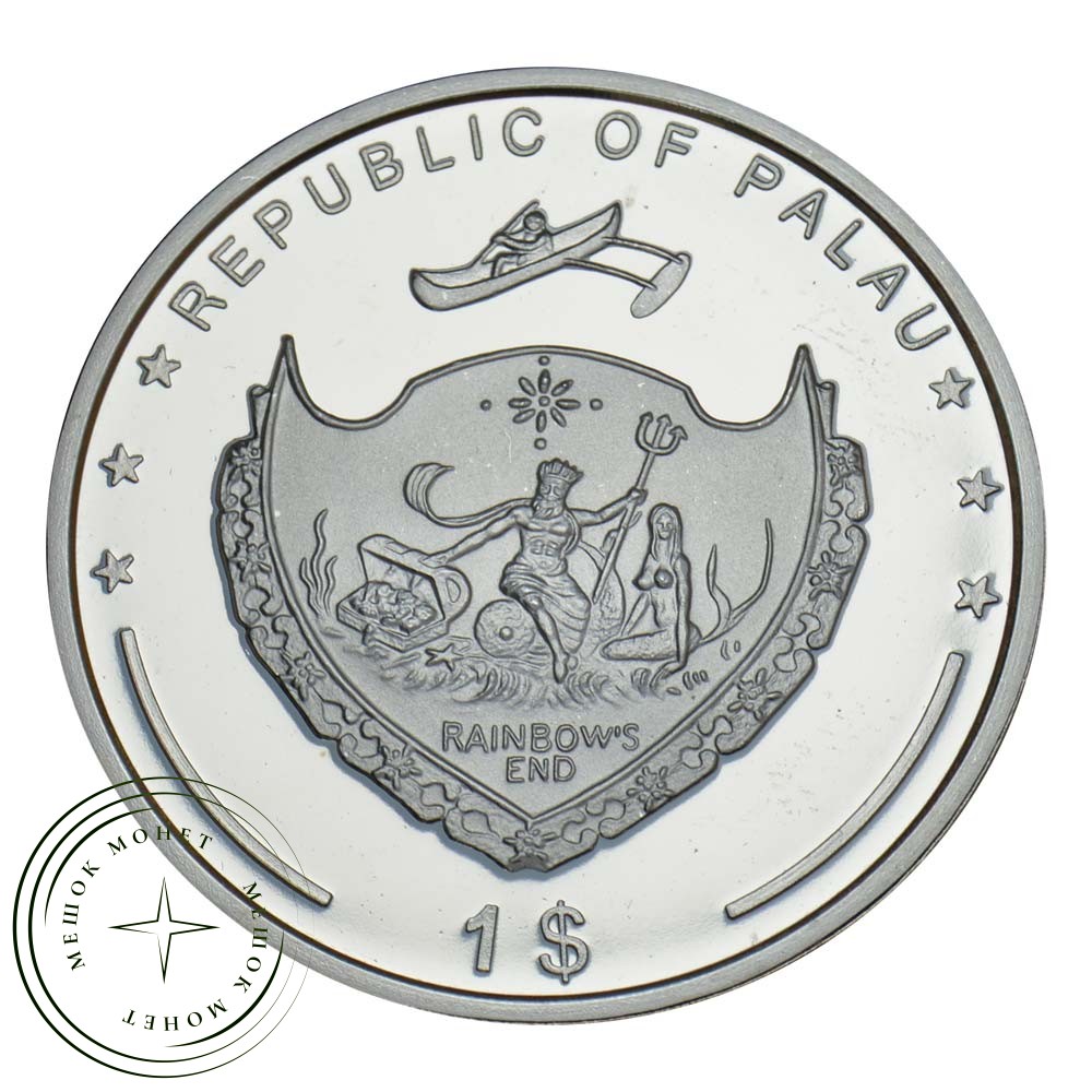 Палау 1 доллар 2009 Вымирающие виды - Крупнопятнистый спинорогЕсть отличия: